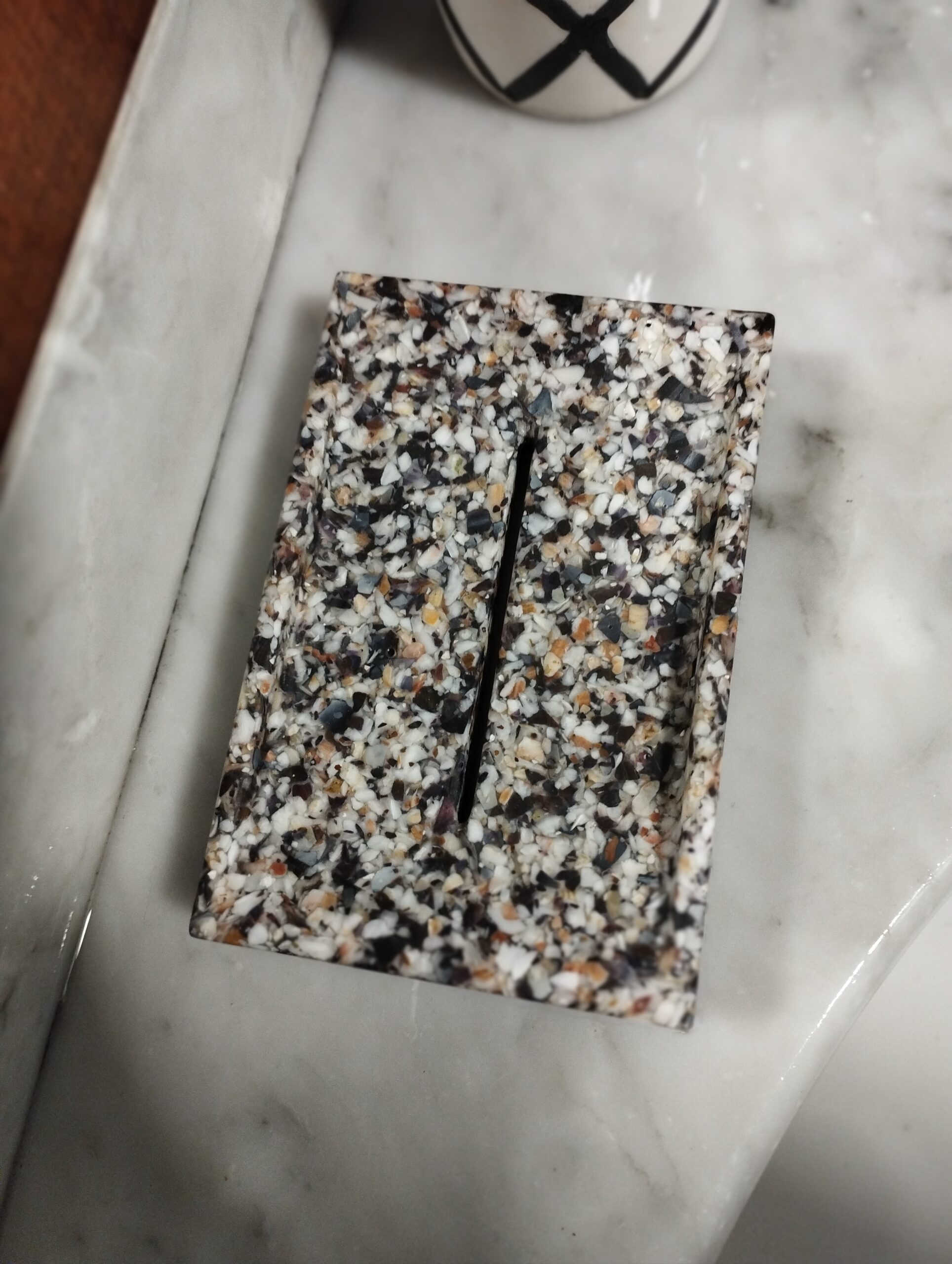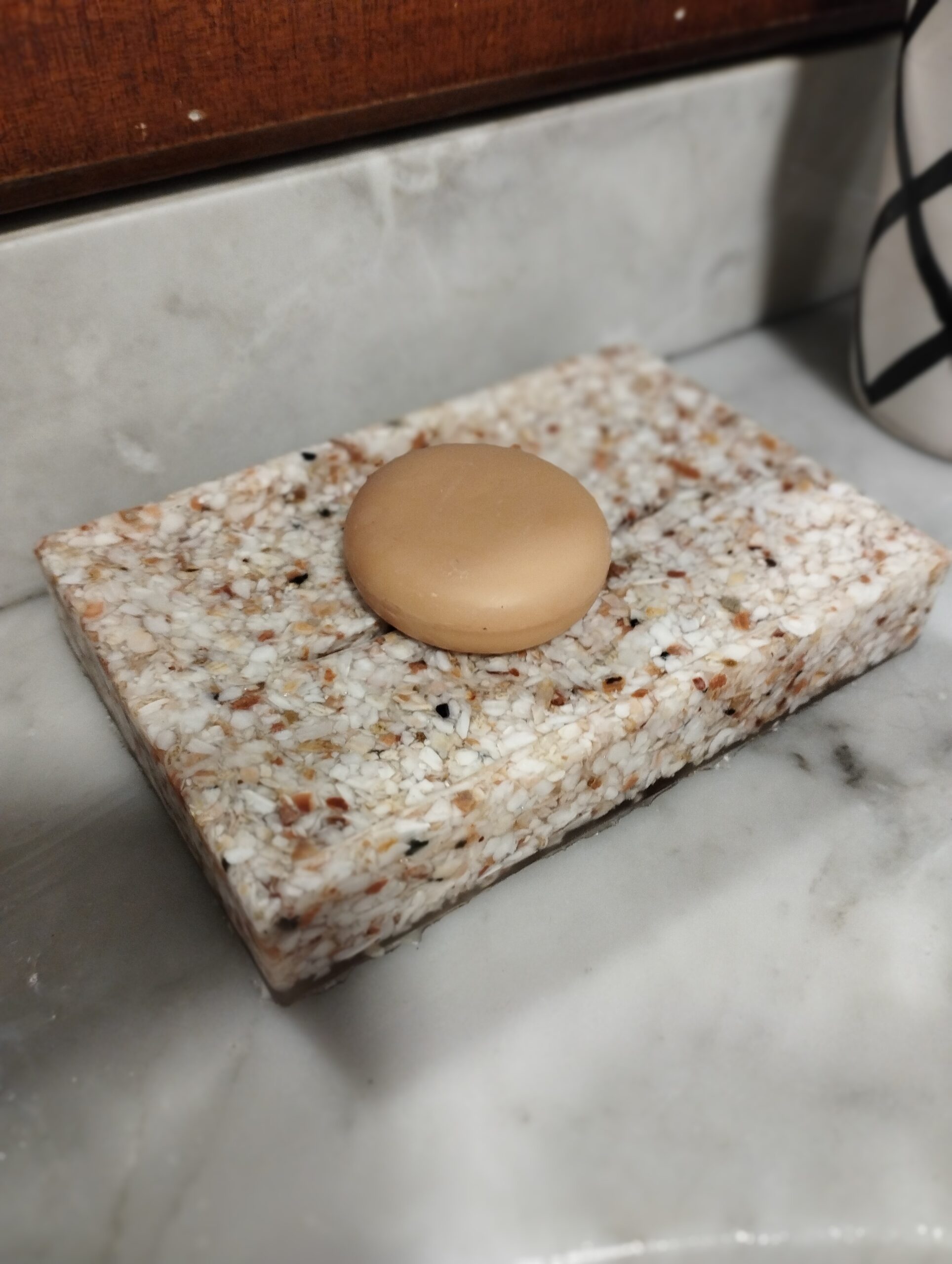 Quelle fabuleuse idée de transformer nos déchets en objets de déco. Les différentes teintes coquille saint Jacques, huitre, moule….permettent de s’adapter à de nombreux intérieurs, du coup j’en ai offert à mes parents, et nos salles des bain en ont aussi profité. Verre brosse à dent, coupelle savon, petit plateau vide poche…joli et recyclé, voilà qui nous permet de se faire plaisir sans impacter la planète 🙂